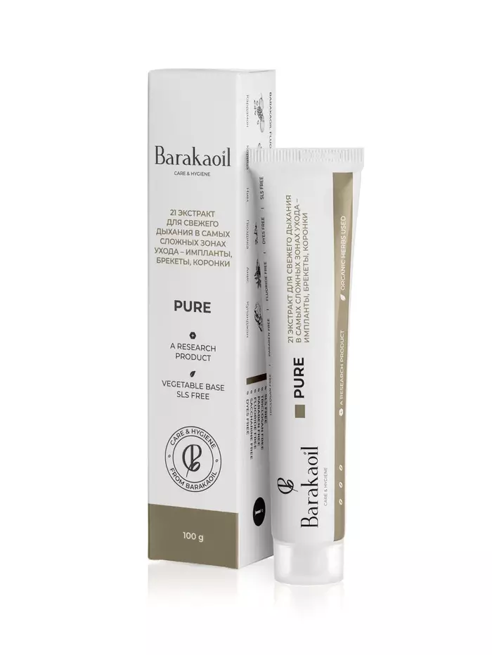 Зубная паста Pure от Barakaoil — это идеальное решение для поддержания здоровья полости рта. В каждой упаковке содержится 100 мл пасты, которая обеспечивает эффективную защиту зубов и десен, а также освежает дыхание.